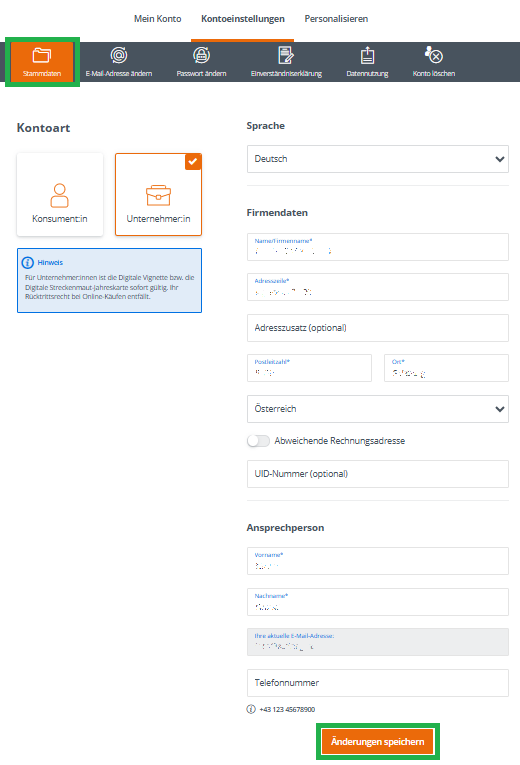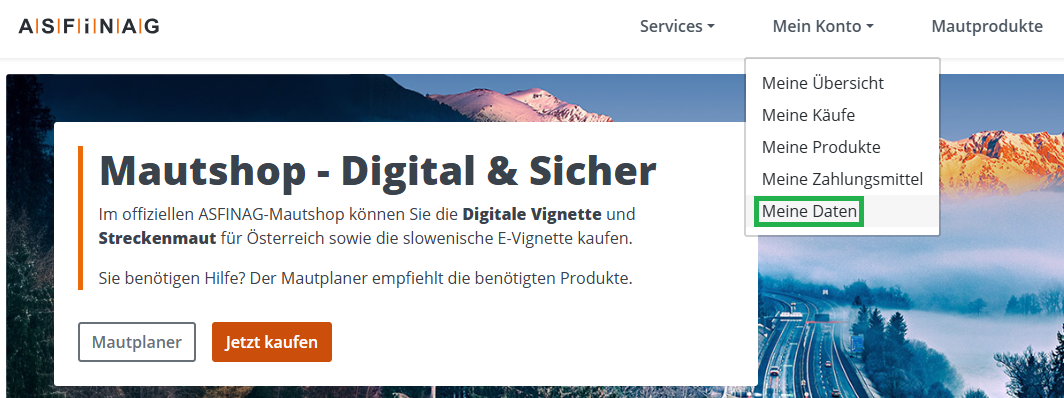 View and change personal data easily at any time - Manage digital toll products and subscriptions